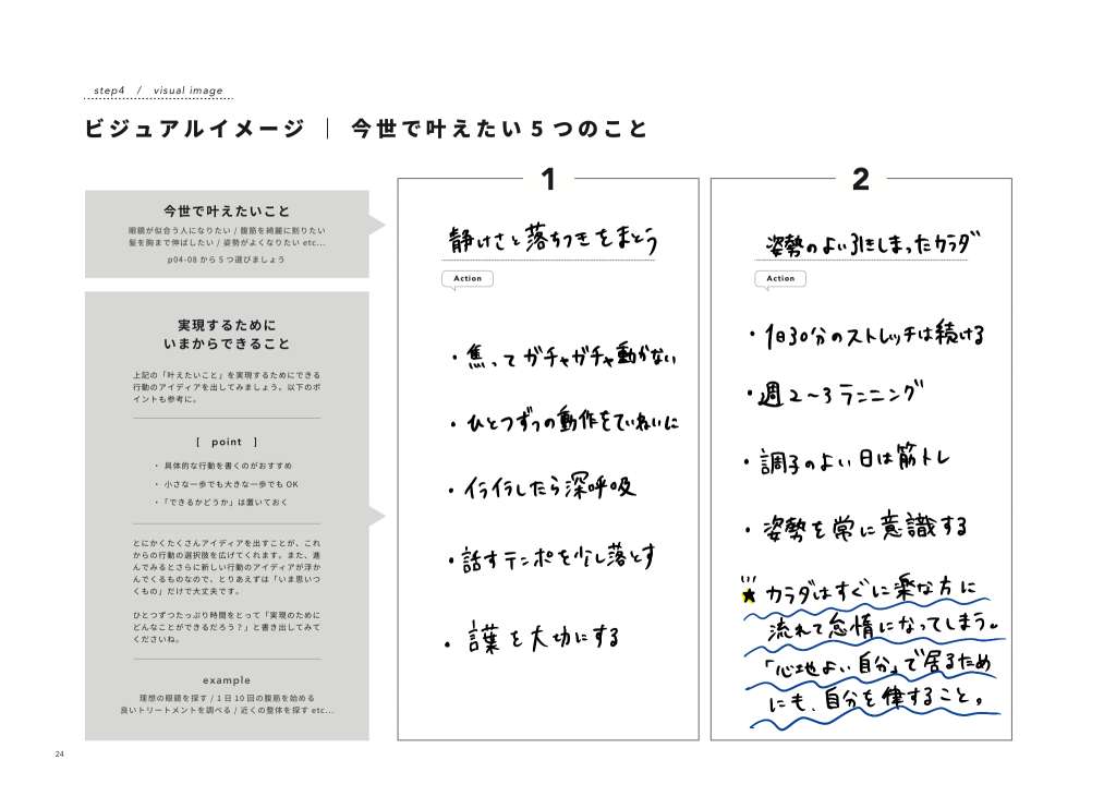 特にstep4で書き出した「今世で叶えたいこと」は、日々のなかに取り入れたり、近づくためにあゆみを進めたりしていくために、定期的にプランを練り直してみてくださいね。