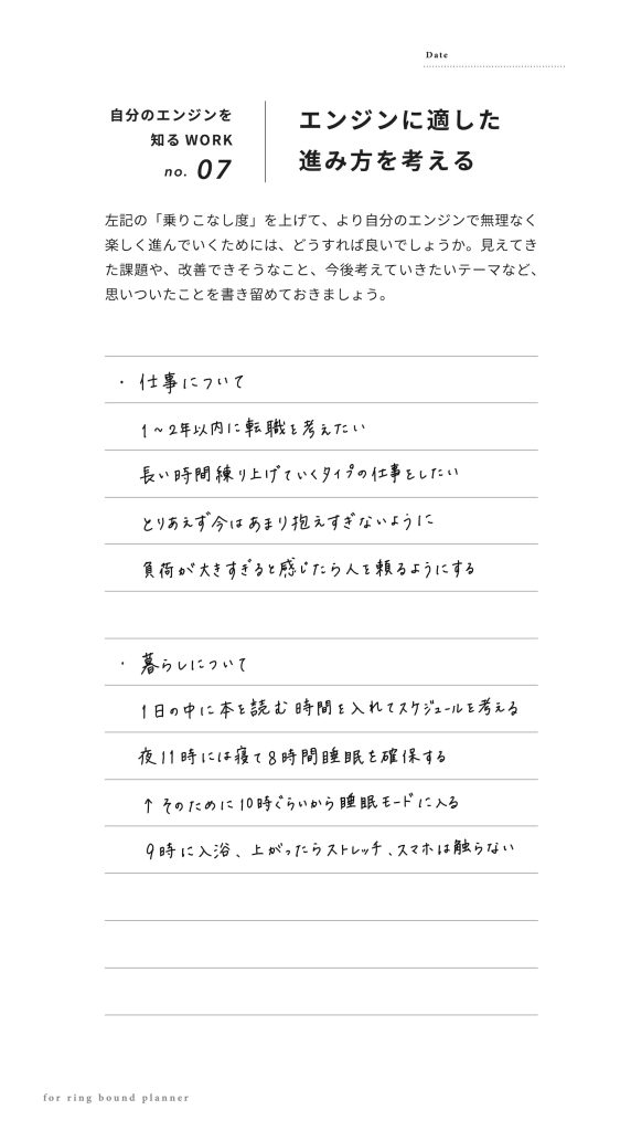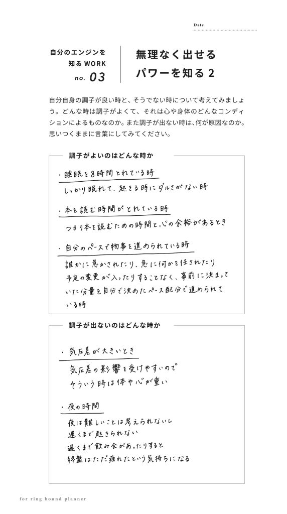 手帳リフィル|自分のエンジンを知るsample page
