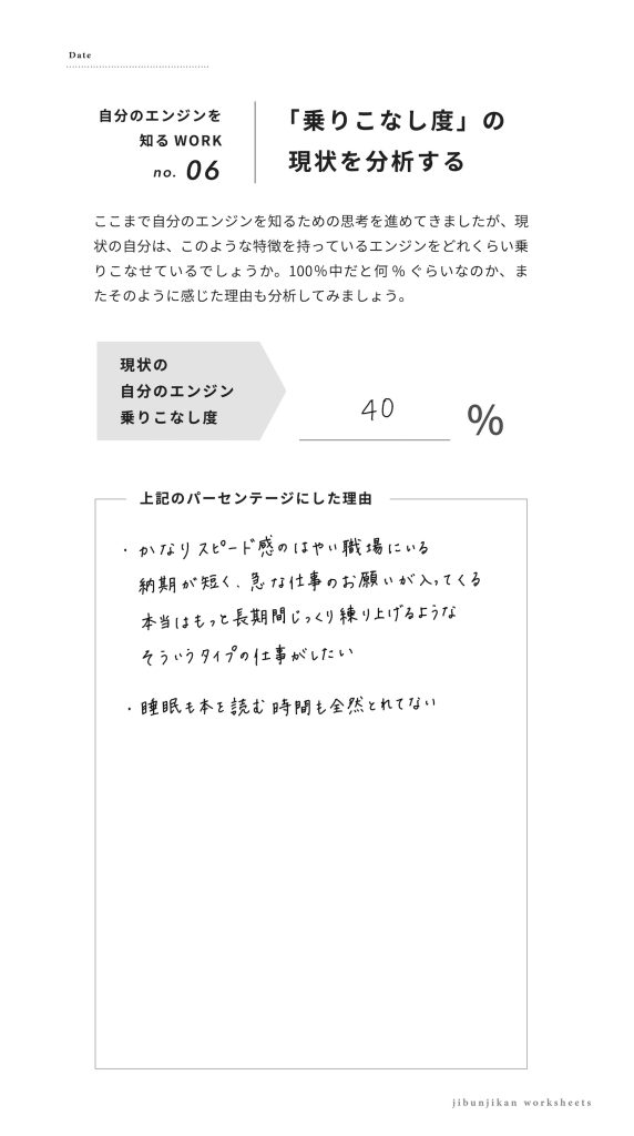 ただ全部あげてしまうと、内容のネタバレになってしまうため、「この問いが良かった!」という1〜2枚をアップしていただけると幸いです。SNSにアップされる際は、ぜひじぶんジカンもタグ付けやメンションしていただけたら喜びます。